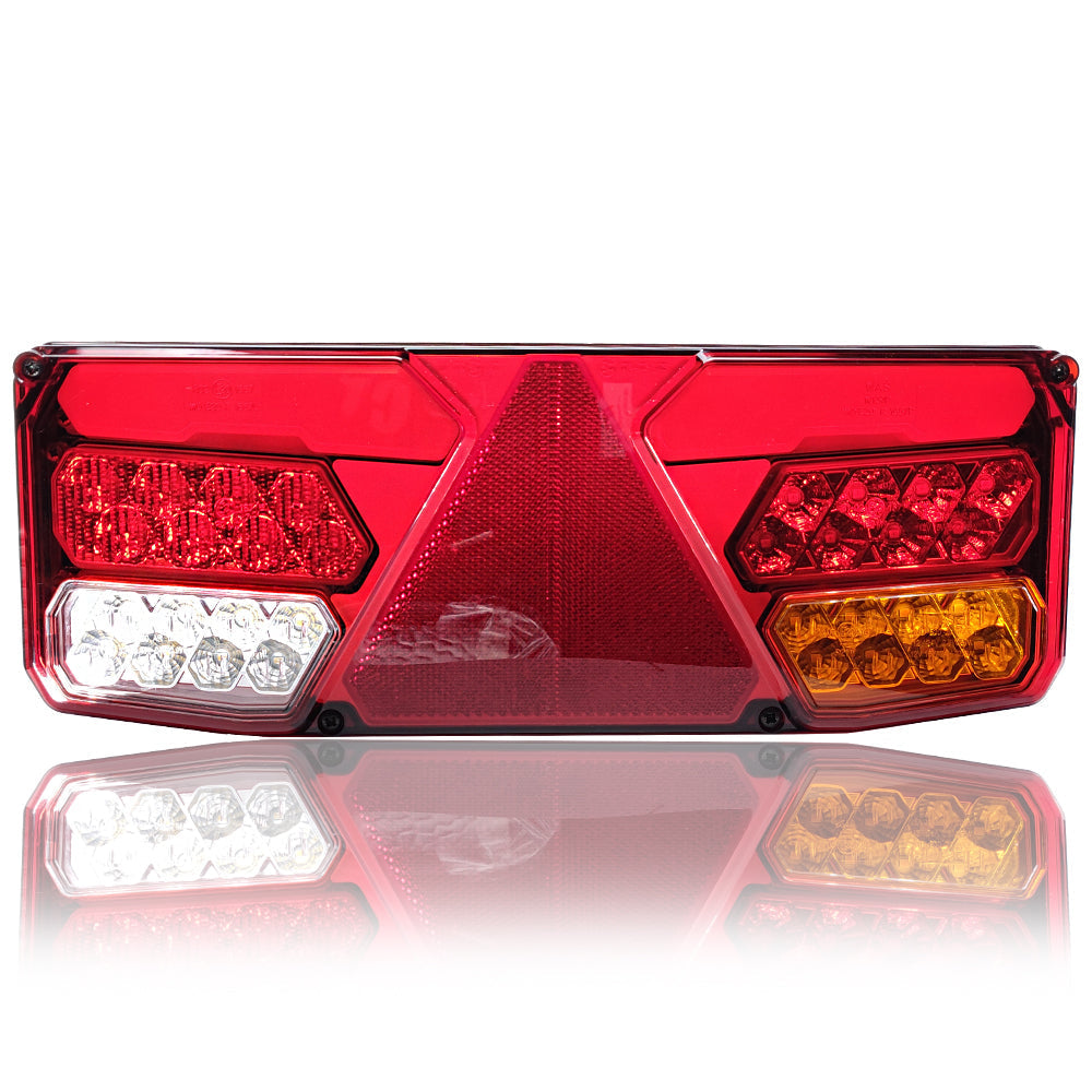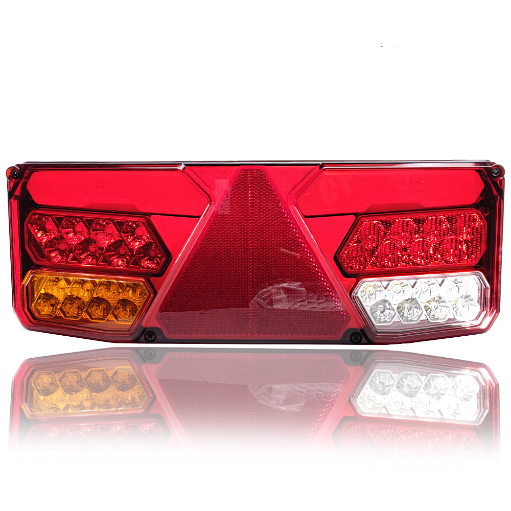 Zadné svetlá na náves: LED lampa 7 funkcií s trojuholníkovou prismou 12–24 V